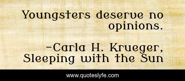 "Carla H. Krueger, Sleeping with the Sun Quotes." Quoteslyfe.com, 2025. Tue. 09 Dec. 2025. <https://www.quoteslyfe.com/quote/Youngsters-deserve-no-opinions-148745>.