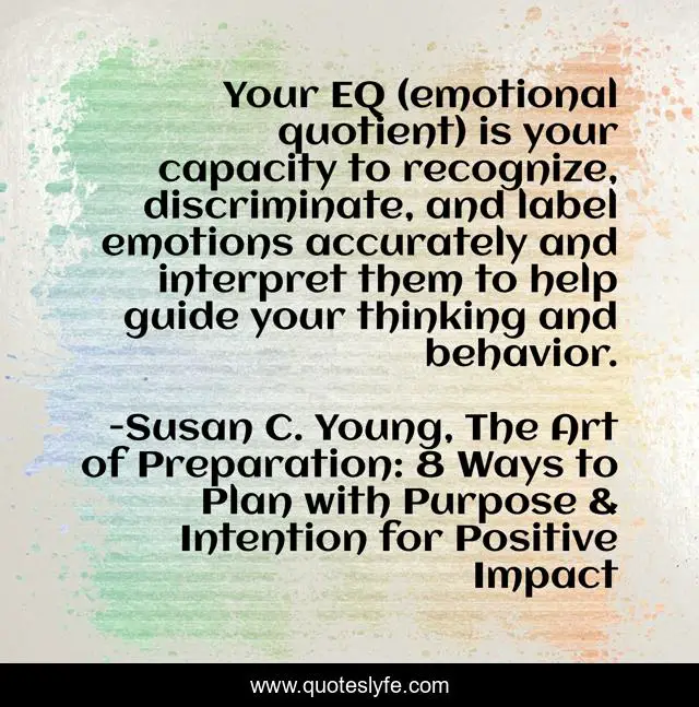 "Susan C. Young, The Art of Preparation: 8 Ways to Plan with Purpose & Intention for Positive Impact Quotes." Quoteslyfe.com, 2025. Tue. 09 Dec. 2025. <https://www.quoteslyfe.com/quote/Your-EQ-emotional-quotient-is-your-capacity-227524>.