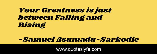 This page presents the quote "Your Greatness is just between Falling and Rising". Author of this quote is Samuel Asumadu-Sarkodie. This quote is about proverbs, words-of-knowledge, discernment, parables, words-of-wisdom, inspiration,.