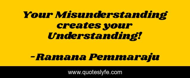 This page presents the quote "Your Misunderstanding creates your Understanding!". Author of this quote is Ramana Pemmaraju. This quote is about perception, people, humans, misunderstanding, understanding, society, life-philosophy,.