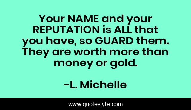 This page presents the quote "Your NAME and your REPUTATION is ALL that you have, so GUARD them. They are worth more than money or gold.". Author of this quote is L. Michelle. This quote is about character, integrity,.