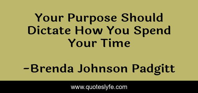 This page presents the quote "Your Purpose Should Dictate How You Spend Your Time". Author of this quote is Brenda Johnson Padgitt. This quote is about time-management, dictate, purpose, time,.
