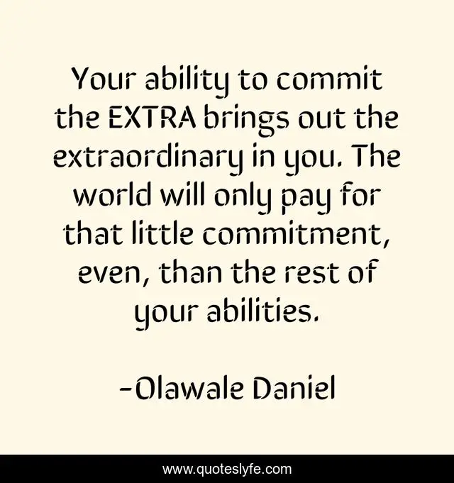 "Olawale Daniel Quotes." Quoteslyfe.com, 2025. Sun. 07 Dec. 2025. <https://www.quoteslyfe.com/quote/Your-ability-to-commit-the-EXTRA-brings-248255>.