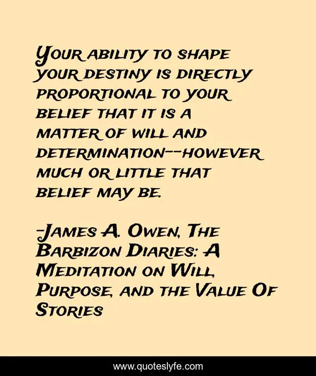 "James A. Owen, The Barbizon Diaries: A Meditation on Will, Purpose, and the Value Of Stories Quotes." Quoteslyfe.com, 2025. Fri. 05 Dec. 2025. <https://www.quoteslyfe.com/quote/Your-ability-to-shape-your-destiny-is-160119>.