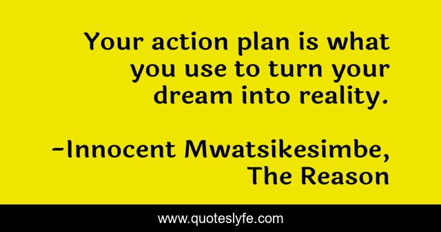 This page presents the quote "Your action plan is what you use to turn your dream into reality.". Author of this quote is Innocent Mwatsikesimbe, The Reason. This quote is about confidence, positive, motivational, reality, optimistic, inspirational, enthusiasm, dreams,.
