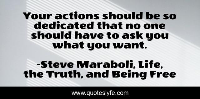 This page presents the quote "Your actions should be so dedicated that no one should have to ask you what you want.". Author of this quote is Steve Maraboli, Life, the Truth, and Being Free. This quote is about actions, success,.