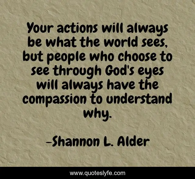 Your actions will always be what the world sees, but people who choose to see through God's eyes will always have the compassion to understand why.