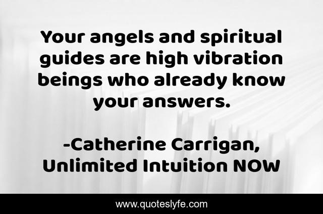 This page presents the quote "Your angels and spiritual guides are high vibration beings who already know your answers.". Author of this quote is Catherine Carrigan, Unlimited Intuition NOW. This quote is about angels, angel,.