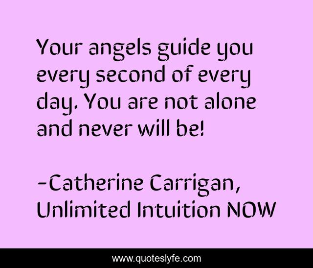 This page presents the quote "Your angels guide you every second of every day. You are not alone and never will be!". Author of this quote is Catherine Carrigan, Unlimited Intuition NOW. This quote is about angels, angel,.