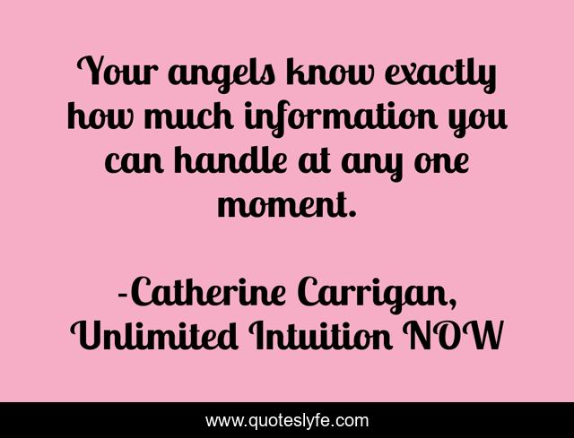 This page presents the quote "Your angels know exactly how much information you can handle at any one moment.". Author of this quote is Catherine Carrigan, Unlimited Intuition NOW. This quote is about intuition, angels,.