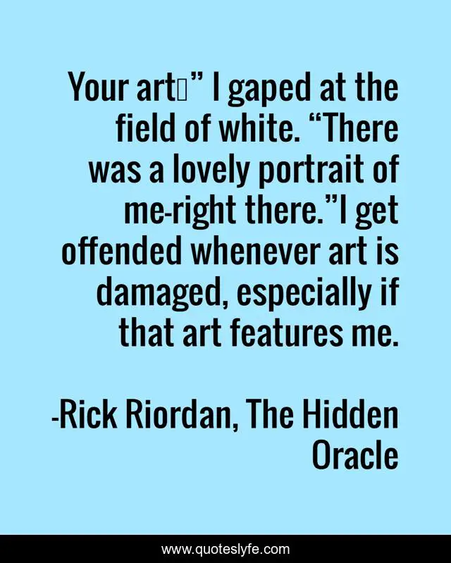 "Rick Riordan, The Hidden Oracle Quotes." Quoteslyfe.com, 2025. Mon. 08 Dec. 2025. <https://www.quoteslyfe.com/quote/Your-art-I-gaped-at-the-field-66318>.