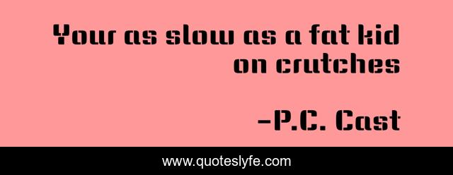 This page presents the quote "Your as slow as a fat kid on crutches". Author of this quote is P.C. Cast. .