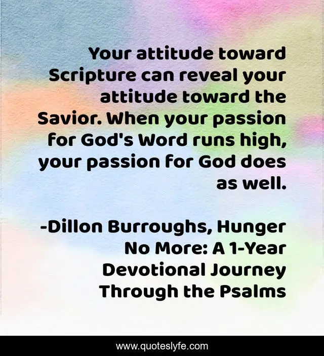 "Dillon Burroughs, Hunger No More: A 1-Year Devotional Journey Through the Psalms Quotes." Quoteslyfe.com, 2025. Sat. 06 Dec. 2025. <https://www.quoteslyfe.com/quote/Your-attitude-toward-Scripture-can-reveal-your-169570>.