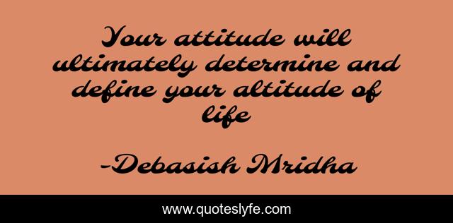 This page presents the quote "Your attitude will ultimately determine and define your altitude of life". Author of this quote is Debasish Mridha. This quote is about attitude-vs-altitude, philosophy, debasish-mridha, behaviour, quotes, attitude, altitude-of-life, debasish-mridha-md, inspirational,.