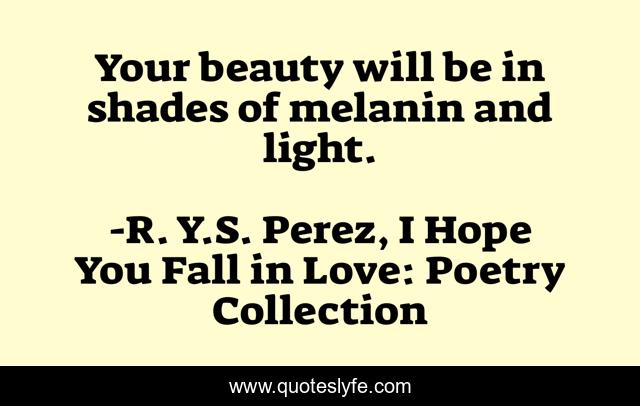 This page presents the quote "Your beauty will be in shades of melanin and light.". Author of this quote is R. Y.S. Perez, I Hope You Fall in Love: Poetry Collection. This quote is about people-of-color, light, poc, beauty, melanin,.