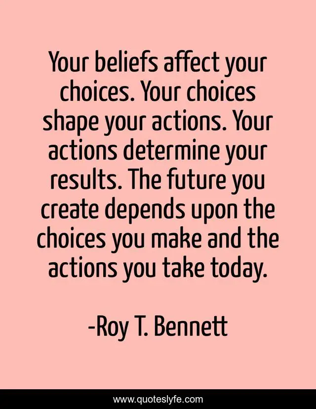 "Roy T. Bennett Quotes." Quoteslyfe.com, 2025. Sun. 07 Dec. 2025. <https://www.quoteslyfe.com/quote/Your-beliefs-affect-your-choices-Your-choices-3307>.