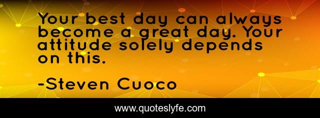 This page presents the quote "Your best day can always become a great day. Your attitude solely depends on this.". Author of this quote is Steven Cuoco. This quote is about best-ever, brainy, quote-of-the-day, international-authors, inspirational, quotes-to-live-by, enthusiasm, friendship, brainy-words,.
