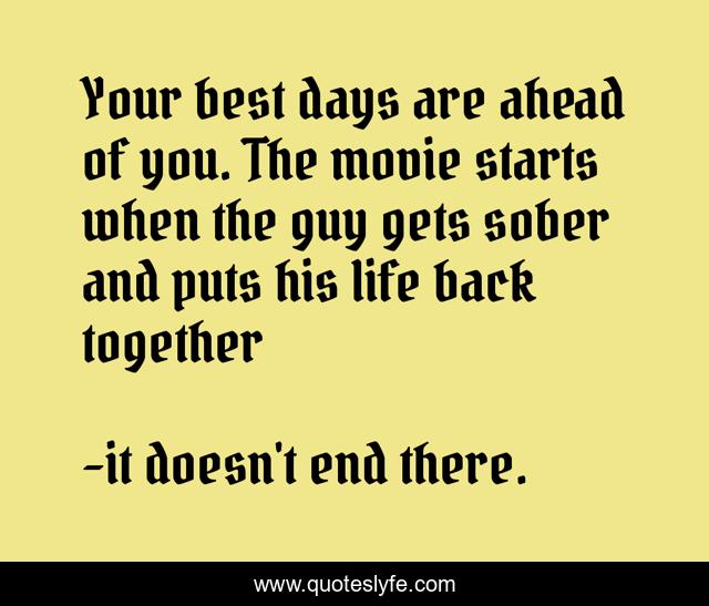 This page presents the quote "Your best days are ahead of you. The movie starts when the guy gets sober and puts his life back together". Author of this quote is it doesn't end there.. This quote is about bucky sinister, get up: a 12-step guide to recovery for misfits, freaks, and weirdos,.
