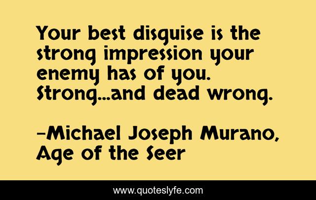 "Michael Joseph Murano, Age of the Seer Quotes." Quoteslyfe.com, 2025. Tue. 09 Dec. 2025. <https://www.quoteslyfe.com/quote/Your-best-disguise-is-the-strong-impression-104702>.