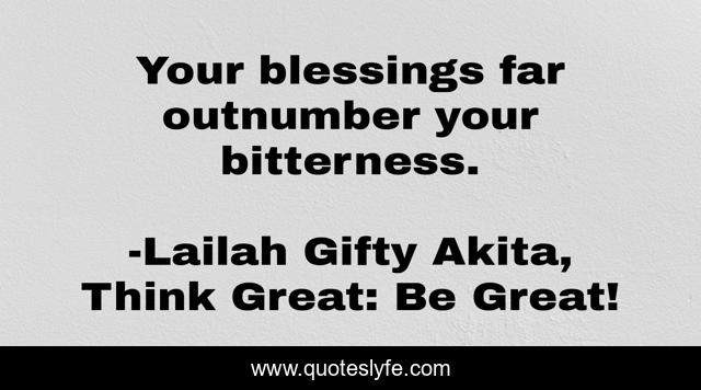 "Lailah Gifty Akita, Think Great: Be Great! Quotes." Quoteslyfe.com, 2025. Sat. 06 Dec. 2025. <https://www.quoteslyfe.com/quote/Your-blessings-far-outnumber-your-bitterness-85032>.