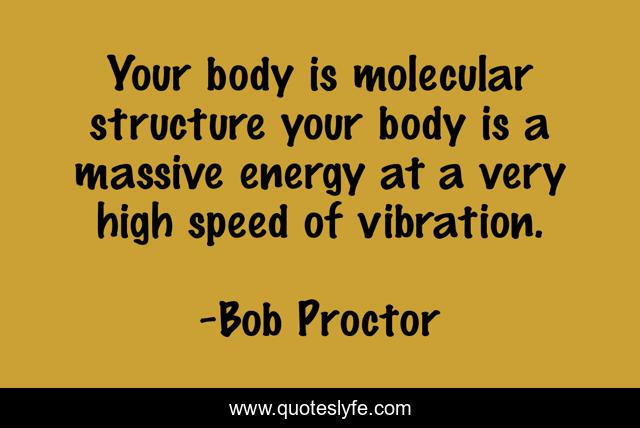 This page presents the quote "Your body is molecular structure your body is a massive energy at a very high speed of vibration.". Author of this quote is Bob Proctor. This quote is about personal-development, self-growth, personal-growth, self-help,.