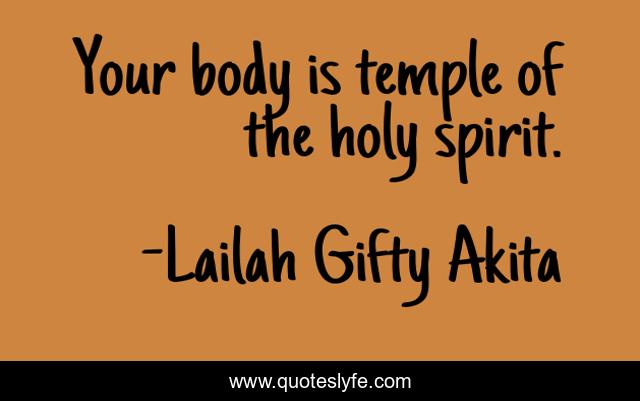 This page presents the quote "Your body is temple of the holy spirit.". Author of this quote is Lailah Gifty Akita. This quote is about body, spiritual, christian, church, temple, holy-spirit,.