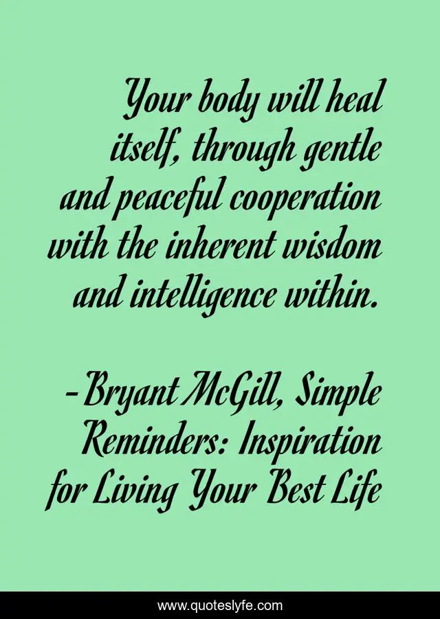 "Bryant McGill, Simple Reminders: Inspiration for Living Your Best Life Quotes." Quoteslyfe.com, 2025. Fri. 05 Dec. 2025. <https://www.quoteslyfe.com/quote/Your-body-will-heal-itself-through-gentle-148168>.