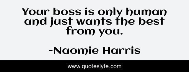 This page presents the quote "Your boss is only human and just wants the best from you.". Author of this quote is Naomie Harris. This quote is about human, boss,.