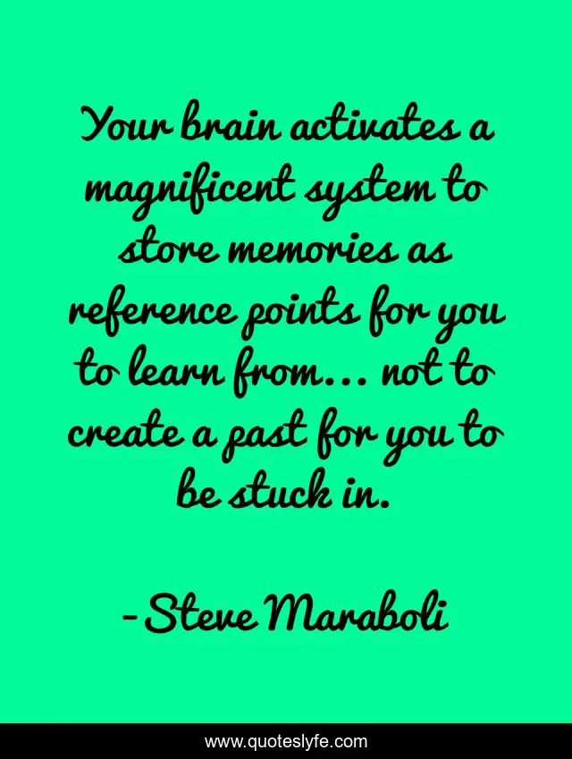 This page presents the quote "Your brain activates a magnificent system to store memories as reference points for you to learn from... not to create a past for you to be stuck in.". Author of this quote is Steve Maraboli. This quote is about past, brain, let-go, memories,.