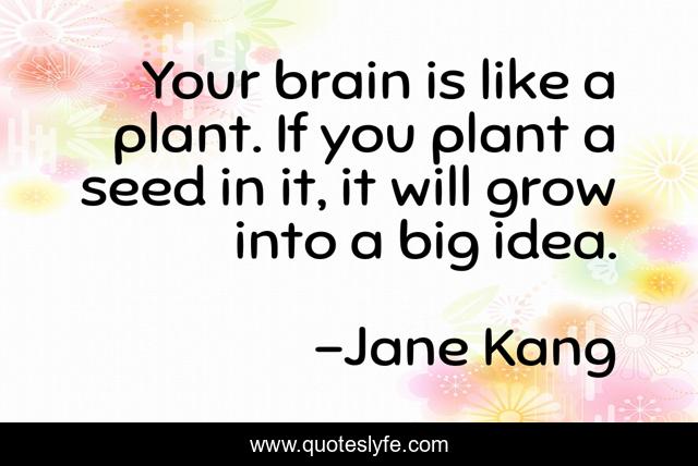 This page presents the quote "Your brain is like a plant. If you plant a seed in it, it will grow into a big idea.". Author of this quote is Jane Kang. This quote is about plant, big-idea, idea, brain, seed, inspirational, spoken-words, enthusiasm, grow,.