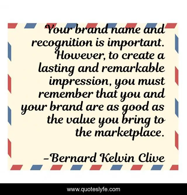"Bernard Kelvin Clive Quotes." Quoteslyfe.com, 2025. Sat. 06 Dec. 2025. <https://www.quoteslyfe.com/quote/Your-brand-name-and-recognition-is-important-176238>.
