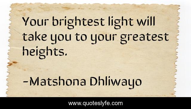 "Matshona Dhliwayo Quotes." Quoteslyfe.com, 2025. Mon. 08 Dec. 2025. <https://www.quoteslyfe.com/quote/Your-brightest-light-will-take-you-to-83696>.
