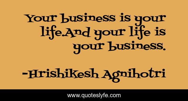 This page presents the quote "Your business is your life.And your life is your business.". Author of this quote is Hrishikesh Agnihotri. This quote is about life, business,.