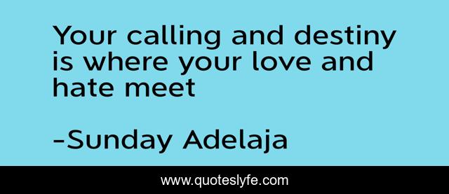 This page presents the quote "Your calling and destiny is where your love and hate meet". Author of this quote is Sunday Adelaja. This quote is about life, blessing, love, destiny, money, work, hate, calling, job,.