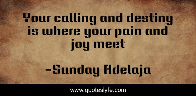 This page presents the quote "Your calling and destiny is where your pain and joy meet". Author of this quote is Sunday Adelaja. This quote is about life, blessing, pain, destiny, joy, work, finance, calling, job,.