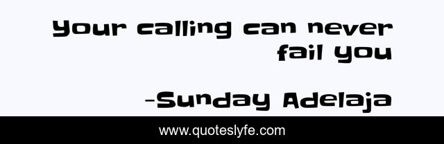 This page presents the quote "Your calling can never fail you". Author of this quote is Sunday Adelaja. This quote is about life, blessing, finance, money, work, calling, job, dependable, purpose,.