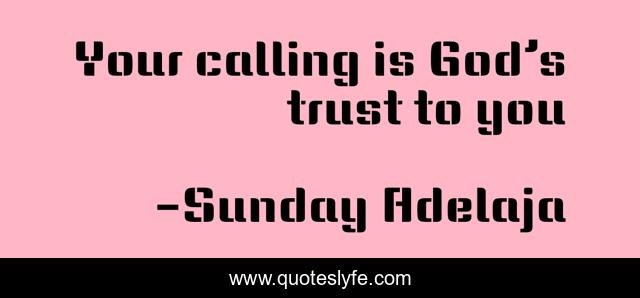 This page presents the quote "Your calling is God’s trust to you". Author of this quote is Sunday Adelaja. This quote is about god, trust, calling,.