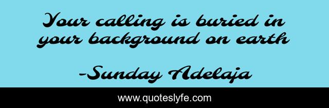 This page presents the quote "Your calling is buried in your background on earth". Author of this quote is Sunday Adelaja. This quote is about love, people, money, principles, employment, worship, jobless, service, god,.