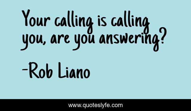 This page presents the quote "Your calling is calling you, are you answering?". Author of this quote is Rob Liano. This quote is about your-calling, success, life, motivation, wisdom, passion, purpose, action, inspiration,.