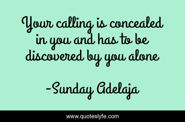 This page presents the quote "Your calling is concealed in you and has to be discovered by you alone". Author of this quote is Sunday Adelaja. This quote is about love, pragmatic, consciousness, people, money, principles, selflessness, intensity, employment,.