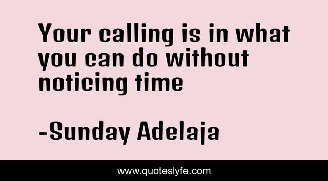 This page presents the quote "Your calling is in what you can do without noticing time". Author of this quote is Sunday Adelaja. This quote is about love, people, money, principles, employment, worship, jobless, service, god,.