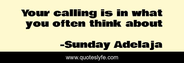 This page presents the quote "Your calling is in what you often think about". Author of this quote is Sunday Adelaja. This quote is about love, pragmatic, consciousness, people, money, principles, selflessness, intensity, employment,.