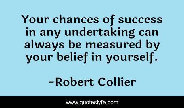 This page presents the quote "Your chances of success in any undertaking can always be measured by your belief in yourself.". Author of this quote is Robert Collier. This quote is about belief, success, yourself,.