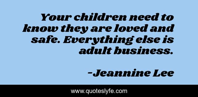 This page presents the quote "Your children need to know they are loved and safe. Everything else is adult business.". Author of this quote is Jeannine Lee. This quote is about children, divorce-relationship, child-safety,.