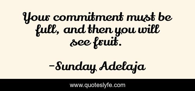This page presents the quote "Your commitment must be full, and then you will see fruit.". Author of this quote is Sunday Adelaja. This quote is about fruitfulness, commitment,.