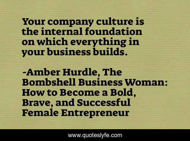 "Amber Hurdle, The Bombshell Business Woman: How to Become a Bold, Brave, and Successful Female Entrepreneur Quotes." Quoteslyfe.com, 2025. Sat. 06 Dec. 2025. <https://www.quoteslyfe.com/quote/Your-company-culture-is-the-internal-foundation-64101>.