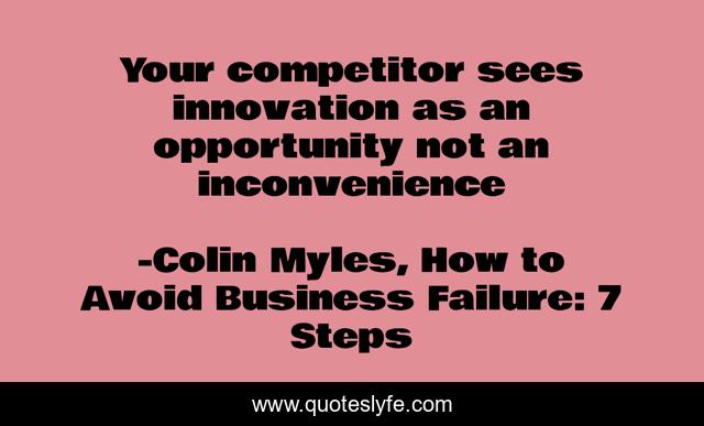 This page presents the quote "Your competitor sees innovation as an opportunity not an inconvenience". Author of this quote is Colin Myles, How to Avoid Business Failure: 7 Steps. This quote is about ideas, innovation,.