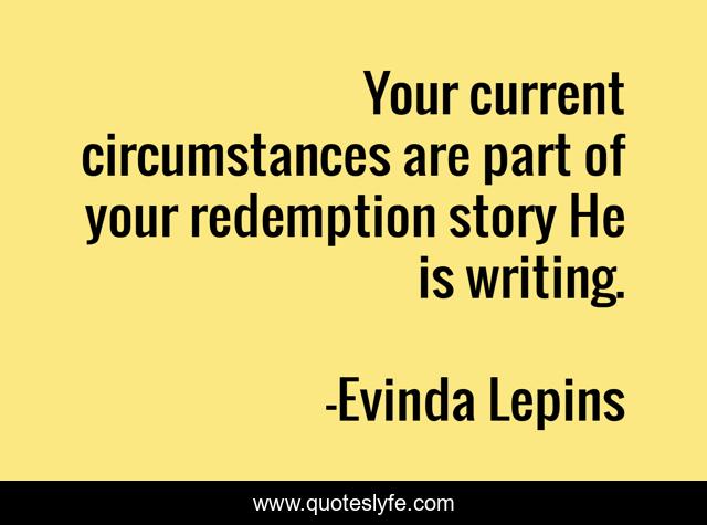 This page presents the quote "Your current circumstances are part of your redemption story He is writing.". Author of this quote is Evinda Lepins. This quote is about life, redemption, god-s-plan, god, writing, life-lessons, god-s-will, circumstances,.