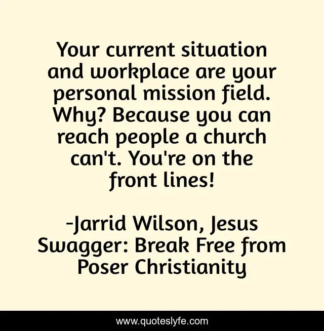 "Jarrid Wilson, Jesus Swagger: Break Free from Poser Christianity Quotes." Quoteslyfe.com, 2025. Sat. 06 Dec. 2025. <https://www.quoteslyfe.com/quote/Your-current-situation-and-workplace-are-your-142064>.