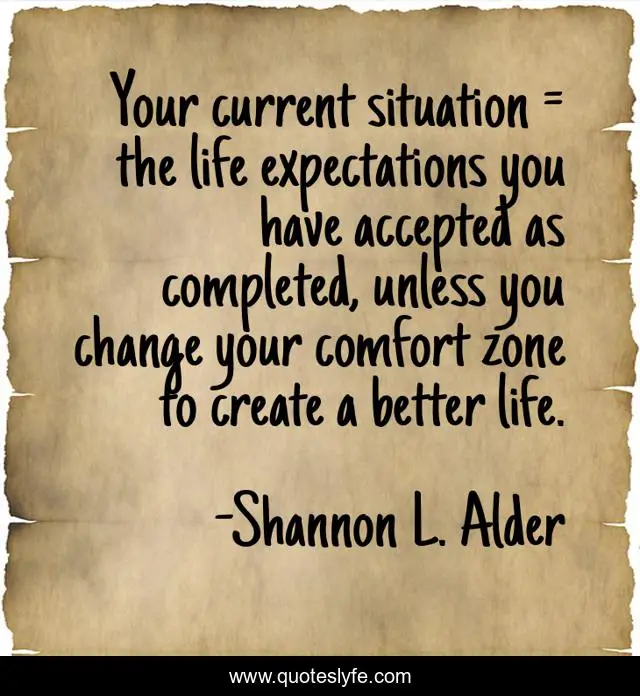"Shannon L. Alder Quotes." Quoteslyfe.com, 2025. Sat. 06 Dec. 2025. <https://www.quoteslyfe.com/quote/Your-current-situation-the-life-expectations-you-97448>.